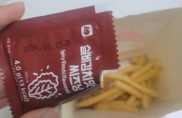 롯데리아 실비김치 씨즈닝을 맵찔이가 먹어본 결과 생각보다 맵지는 않았어요. 김치 맛이 강하지는 않았지만, 김치 향이 나는 것이 신기했고, 매콤한 맛에 나도 모르게 계속 먹게 되고, 계속 먹다 보니 쓰읍~ 소리가 절로 나는 매운맛이었어요. 치킨에도 어울리기는 했지만 감자튀김에 더 잘 어울리는 것 같고, 맥주와 함께 먹으면 궁합이 잘 맞을 것 같은 맛이었습니다. 롯데리아 메뉴 주문할 때 시즈닝만 추가해서 주문가능하니까 궁금한 맛에 한번 주문하는 것도 좋을 듯합니다.