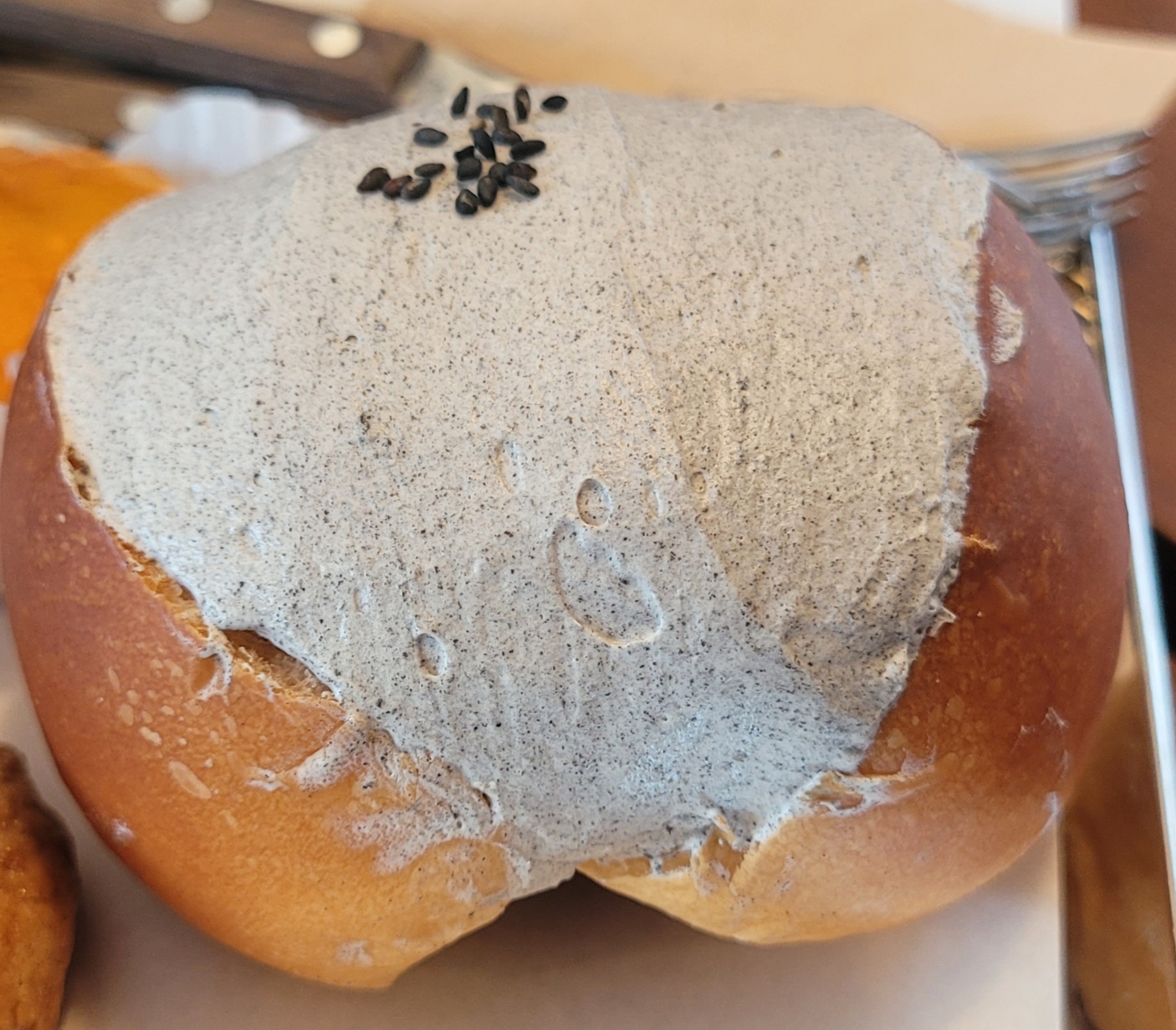 마음 같아서는 빵을 잔뜩 시키고 싶었지만 배가 부른 관계로 3가지 종류만 선택해봤어요. 먼저 흑임자 마리토쯔(4,900원)는 흑임자 크림이 넘치도록 담긴 달달하고 고소한 맛이었고, 약과 조청 쿠키는 예상하는 맛 그대로예요. 약과와 쿠키의 조합이 잘 어울리더라고요. 감타르트도 맛있었어요. 전반적으로 빵 맛이 좋기는 했지만 달달한 것만 골라서 주문한 데다 배까지 부른 상태여서 조금 담백한 맛의 빵을 주문했으면 좋았을 것 같아요. 하지만 빵 맛은 좋았어요.